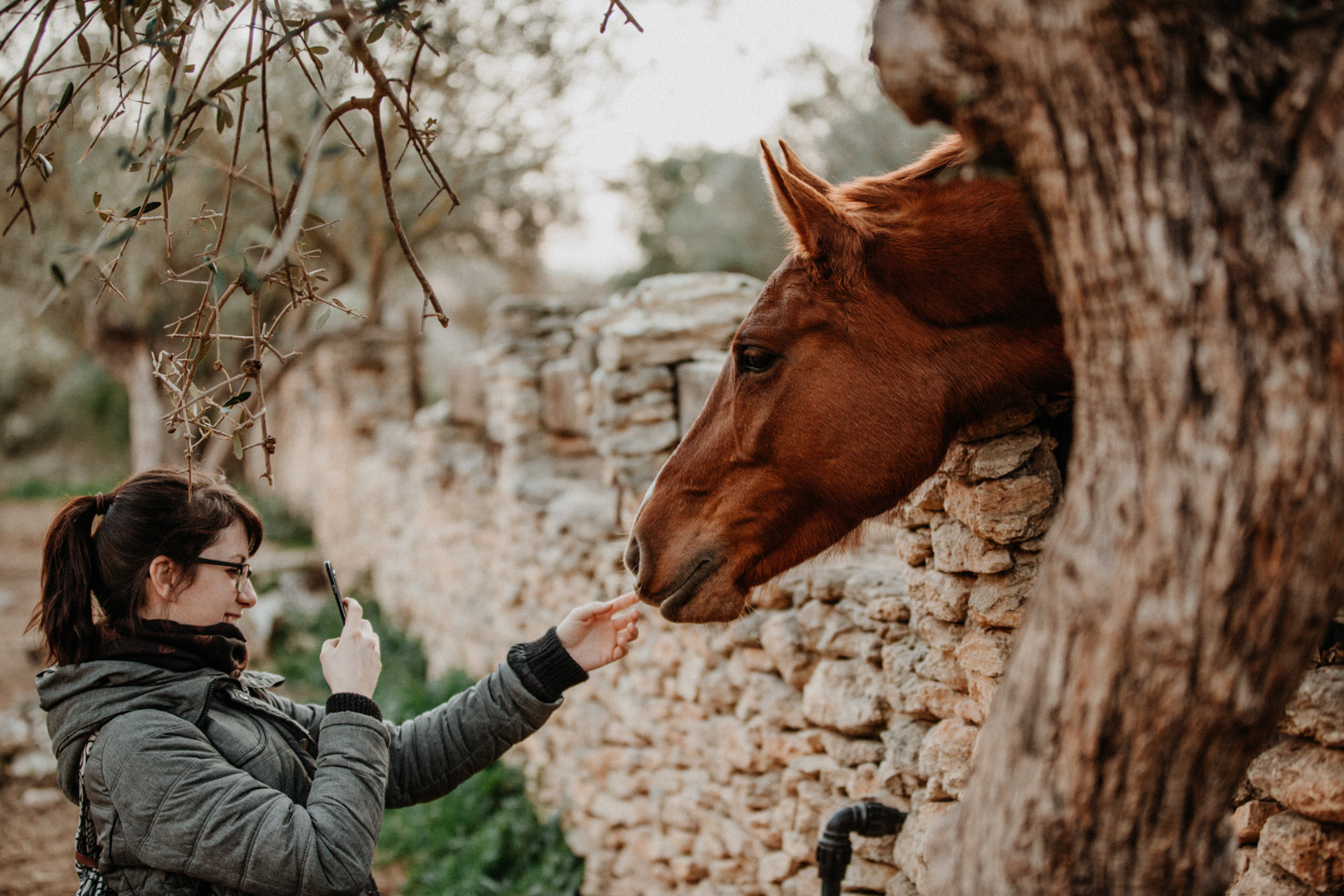 Um 7 Uhr aufzustehen ist für mich quasi ausschlafen, für Helene.. nicht. Aber für Fotos nimmt auch sie das auf sich und so sind wir dann mehr oder weniger pünktlich (nachdem wir das Auto von irgendwas Frostähnlichem befreien mussten, imfall!! Und in Spanien haben die Autos keine Kratzer drin, ergo… Finger.) im Stall erschienen sind, ging es endlich los! Cowboy & Quarter Horse aka Patrick & Major machten den Anfang. Danach folgten Martina und ihre berühmte Bonita im Olivenhain – die Fotos dazu folgen in separaten Blogposts. Das Licht wurde relativ schnell steil und damit schwierig, doch jetzt langsam kamen die Spanier (oder die bereits angepassten Auswanderer) aus den Löchern und plötzlich standen x Leute parat zum Shooting. Licht ungünstig? Egal. Challenge für uns Fotografen, aber nun gut – daran kann man nur wachsen!