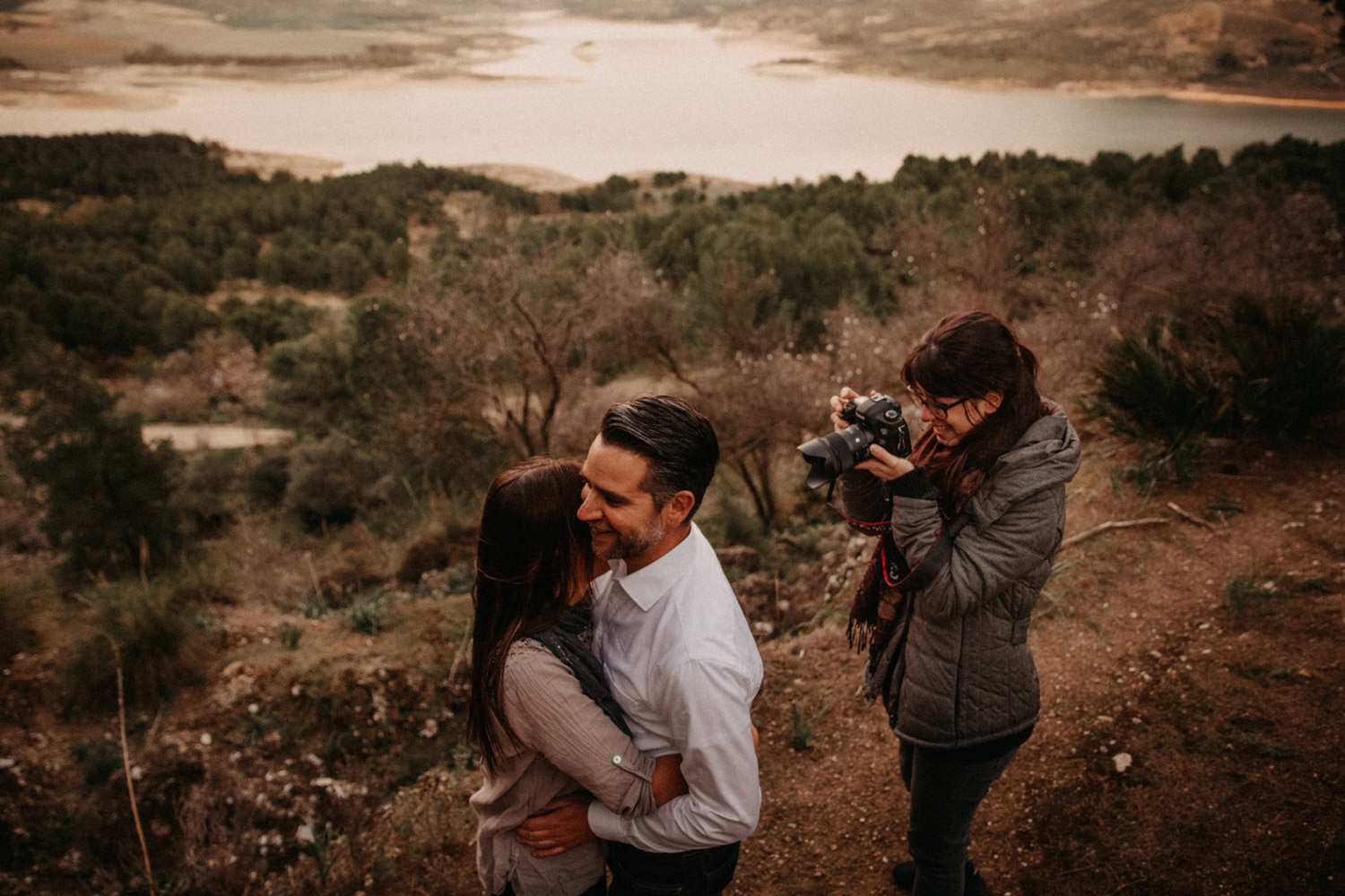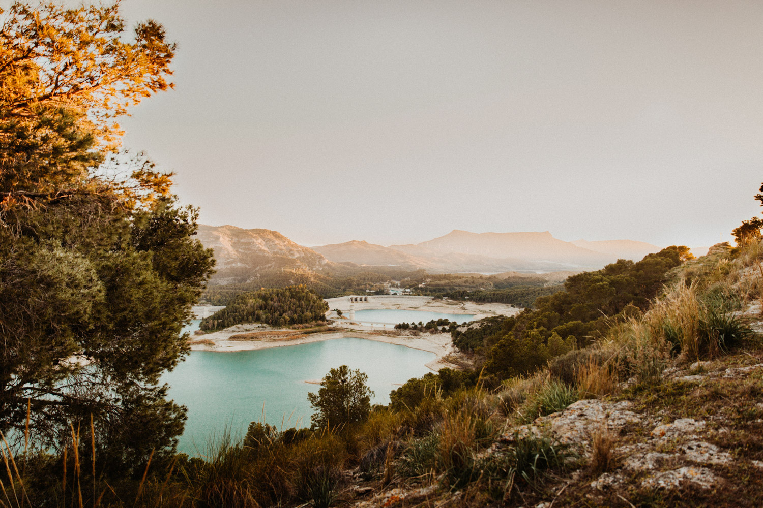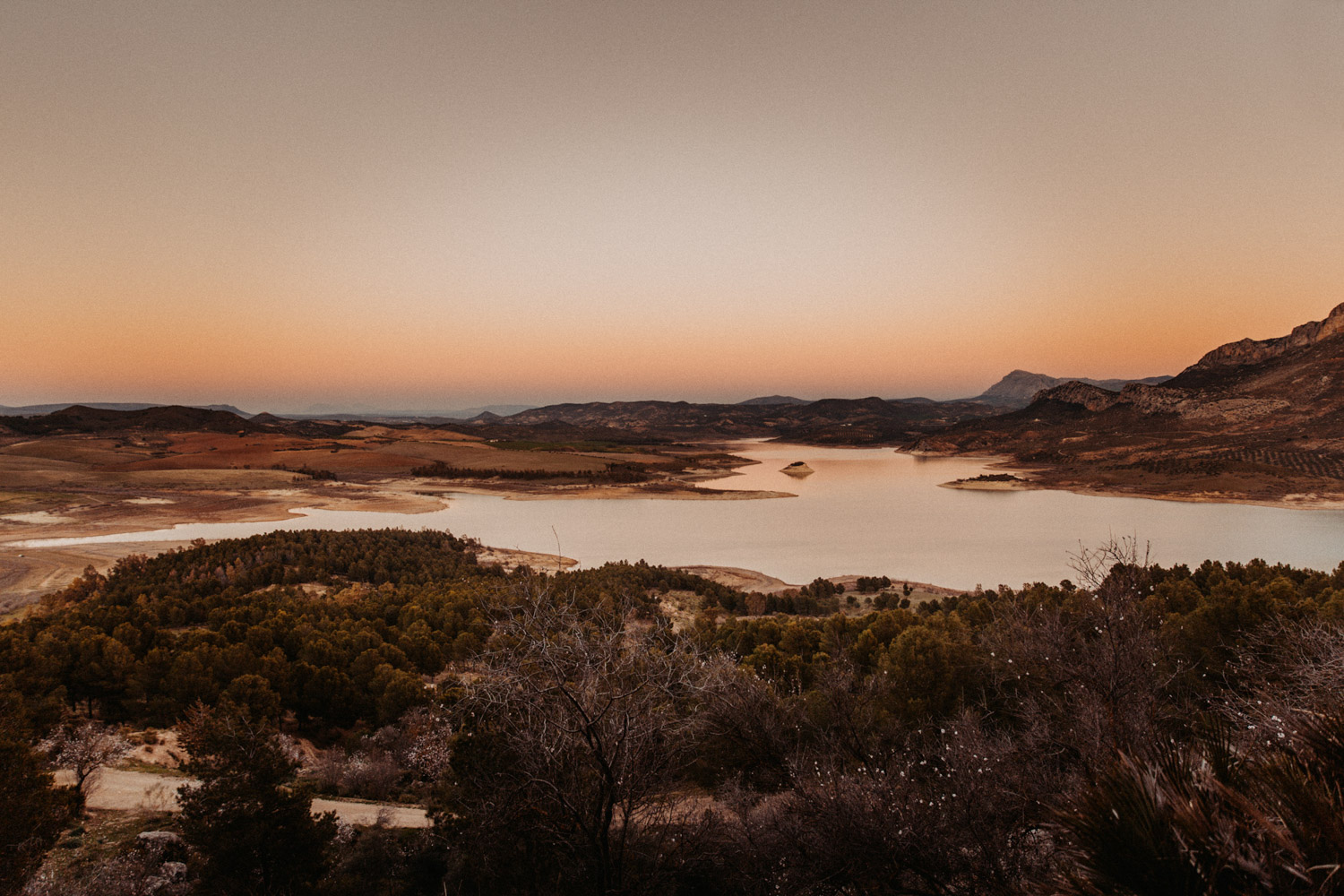Am Abend hatten wir ein weiteres Shooting geplant: Ein Paarshooting mit Martina & Patrick. Die Location dafür war atemberaubend: Drei Stauseen, angeordnet wie ein Mercedes-Stern, und wir auf den Hügeln dazwischen mit Ausblick über die drei Seen. Das Ganze war mal wieder eine etwas spontane Idee, und so sind wir unter ziemlichem Zeitdruck durch Andalusien gefahren, in der Hoffnung dass die Sonne noch nicht ganz untergeht. Wir hatten Glück und das Licht war absolut traumhaft! Wir haben fotografiert bis es gar nicht mehr ging (hallo Rausch-Bilder) und es war einfach nur cool! Hier ein paar Eindrücke von der absolut atemberaubenden Landschaft: