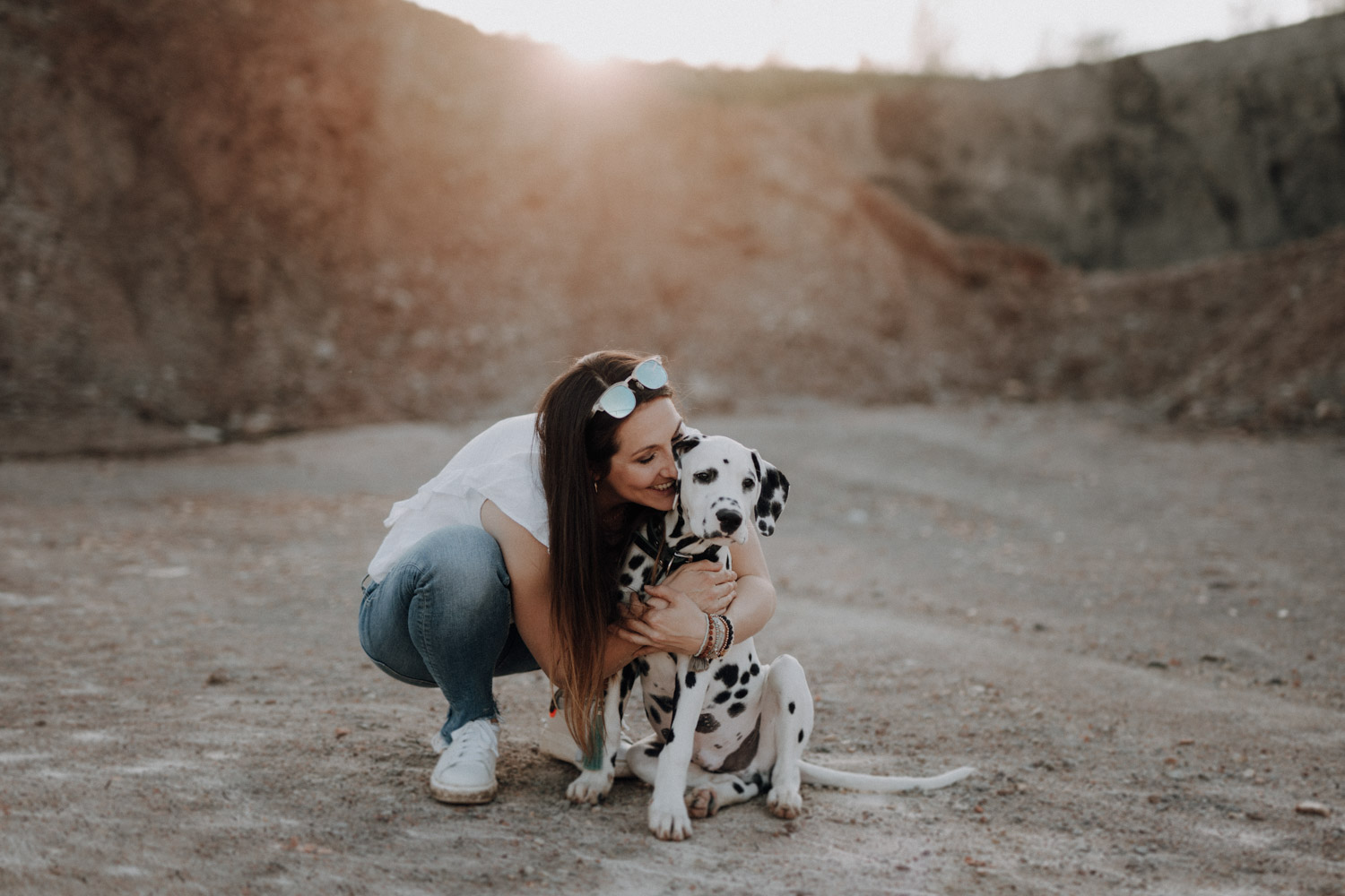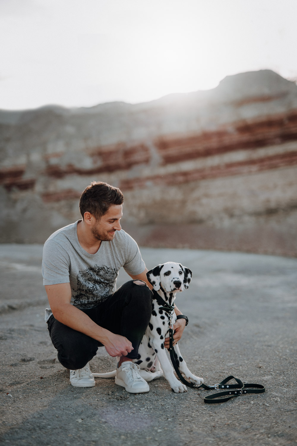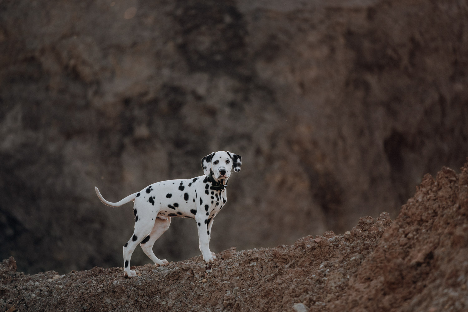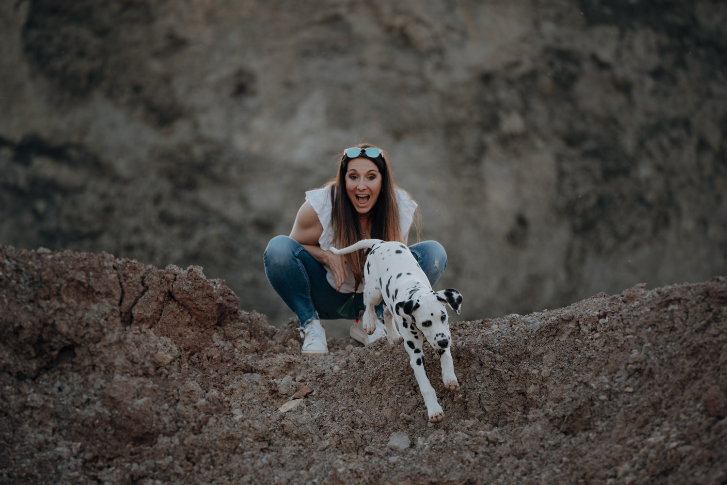 Dominique habe ich bereits vor ein paar Jahren kennengelernt, bei einem Shooting mit ihrer Stute Dillian. An dieses Shooting habe ich ganz besondere Erinnerungen, wir hatten eine wunderschöne Location mit perfektem Licht und die Stimmung zwischen den beiden war einfach schön mitanzusehen. So habe ich mich sehr gefreut, als sich Dominique wieder gemeldet hat – diesmal für ein Fotoshooting mit dem kleinen Henry, einem zuckersüssen Dalmatiner Welpen. Noch vor kurzem hatte ich selbst einen Welpen, doch daraus ist mittlerweile schon eine ausgewachsene Hündin geworden. Das geht so schnell! Als Location habe ich eine Sandgrube gewählt, in der ich schon ein paar Mal Shootings gemacht habe, jedoch noch nie ein Hundeshooting. Es gibt dort Sand und Gesteinsformationen in allen möglichen Farben, für Fotografen ein Paradies. Henry hat wunderbar geduldig mitgemacht. Danke Dominique & Claude für ein weiteres Shooting, das ich in sehr guter Erinnerung behalten werde!
