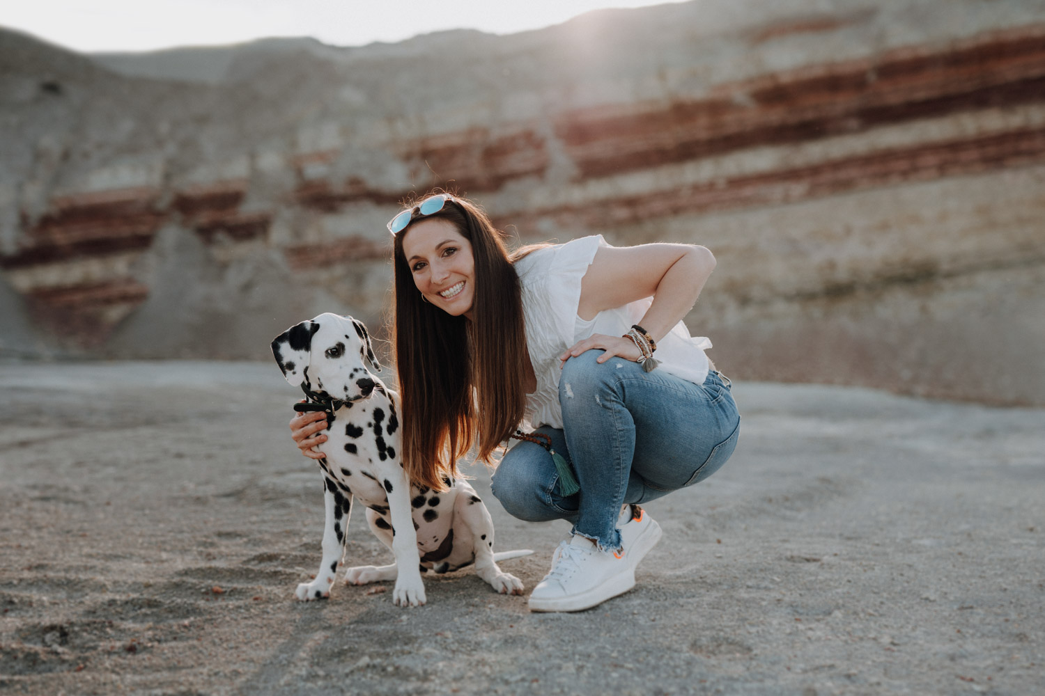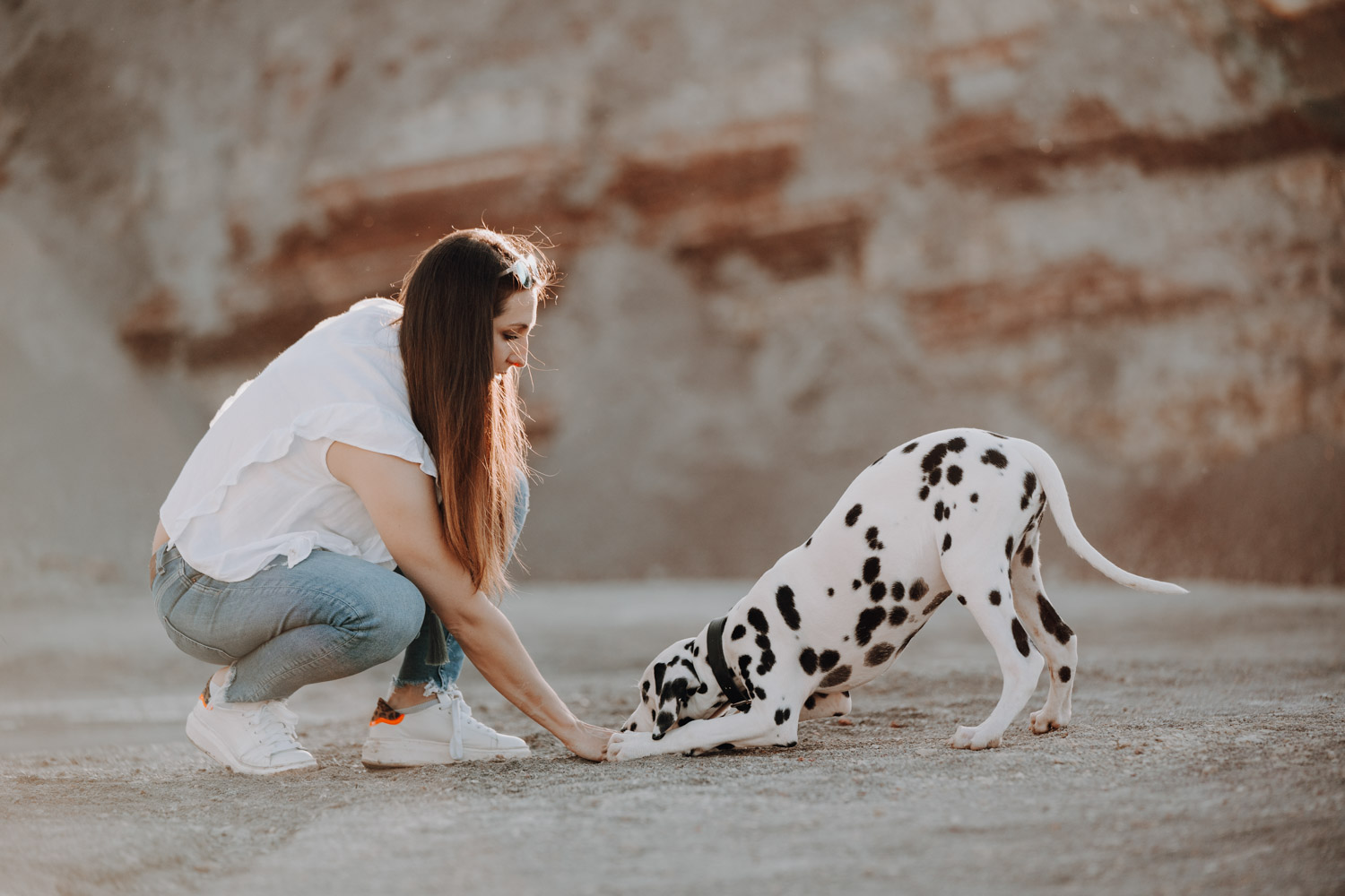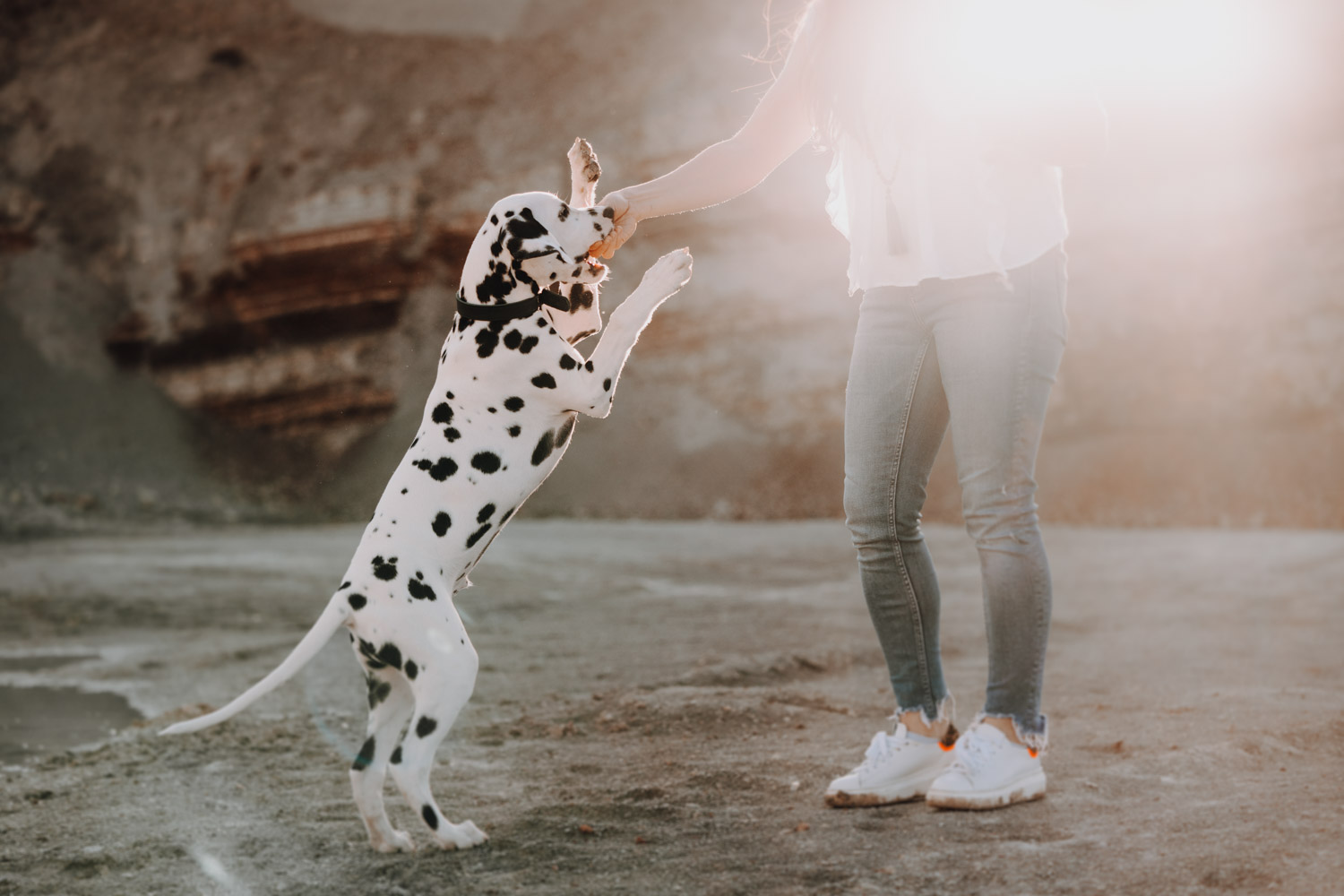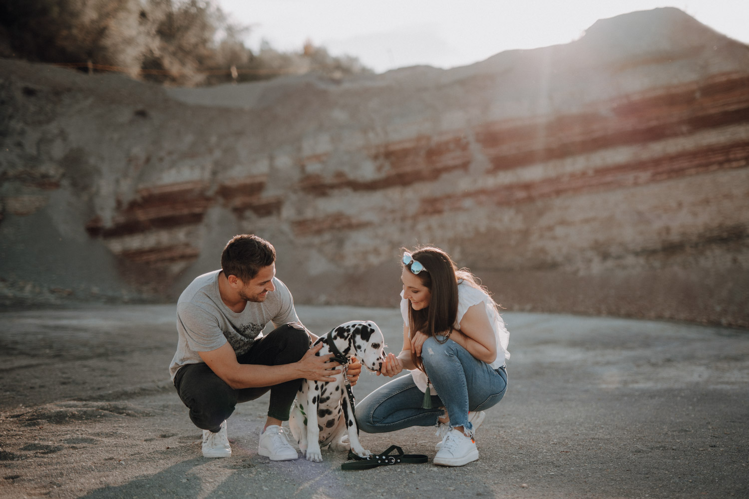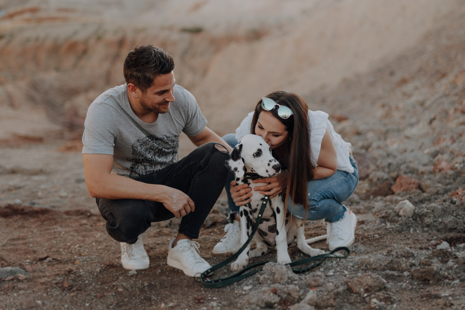 Dominique habe ich bereits vor ein paar Jahren kennengelernt, bei einem Shooting mit ihrer Stute Dillian. An dieses Shooting habe ich ganz besondere Erinnerungen, wir hatten eine wunderschöne Location mit perfektem Licht und die Stimmung zwischen den beiden war einfach schön mitanzusehen. So habe ich mich sehr gefreut, als sich Dominique wieder gemeldet hat – diesmal für ein Fotoshooting mit dem kleinen Henry, einem zuckersüssen Dalmatiner Welpen. Noch vor kurzem hatte ich selbst einen Welpen, doch daraus ist mittlerweile schon eine ausgewachsene Hündin geworden. Das geht so schnell! Als Location habe ich eine Sandgrube gewählt, in der ich schon ein paar Mal Shootings gemacht habe, jedoch noch nie ein Hundeshooting. Es gibt dort Sand und Gesteinsformationen in allen möglichen Farben, für Fotografen ein Paradies. Henry hat wunderbar geduldig mitgemacht. Danke Dominique & Claude für ein weiteres Shooting, das ich in sehr guter Erinnerung behalten werde!