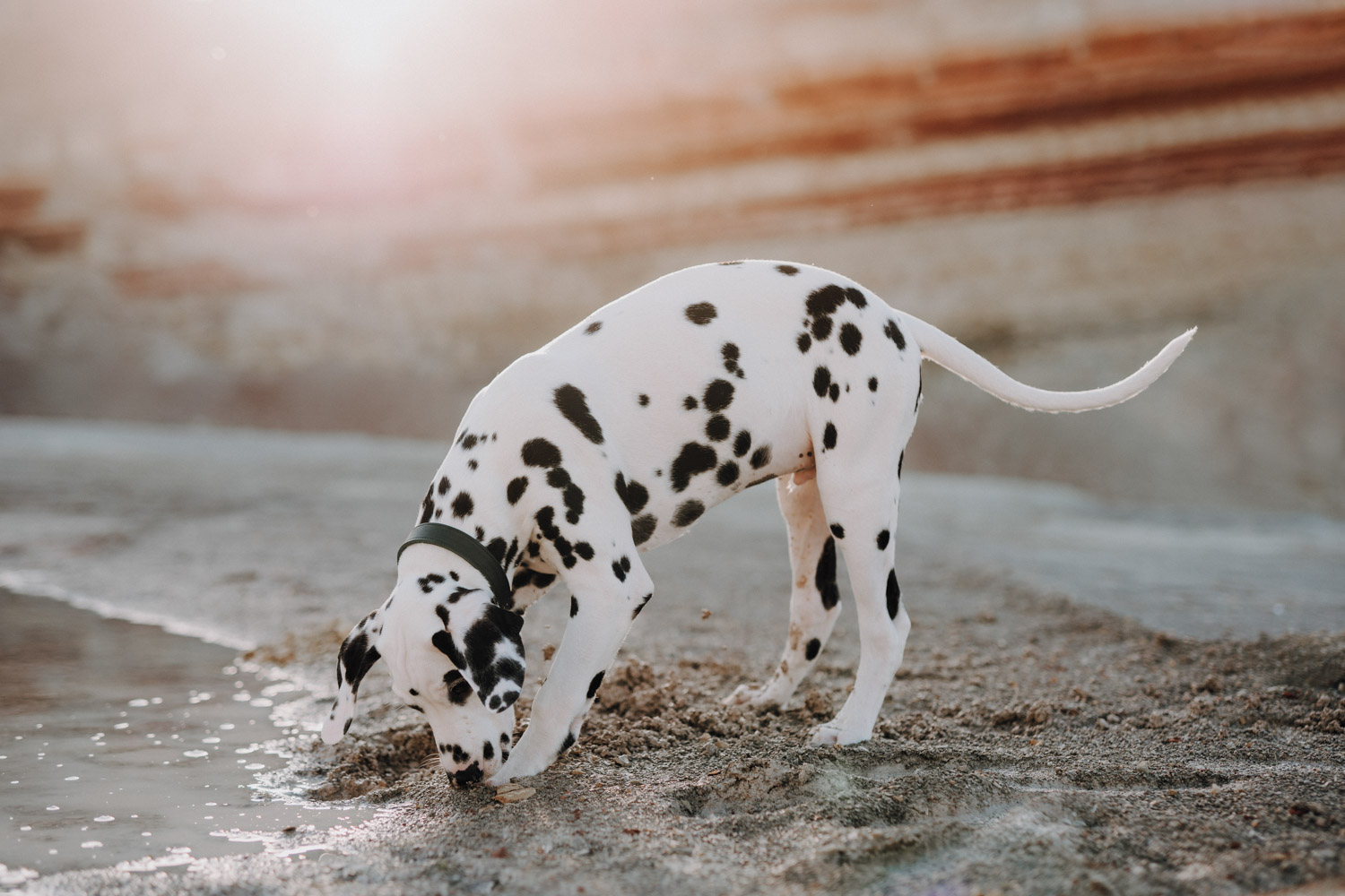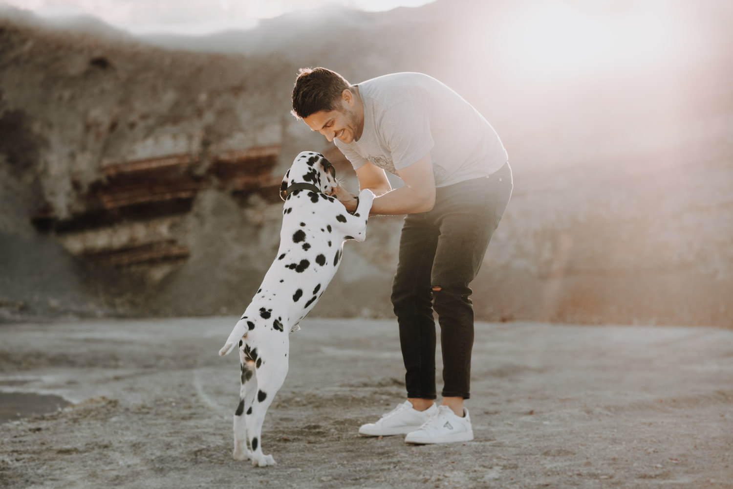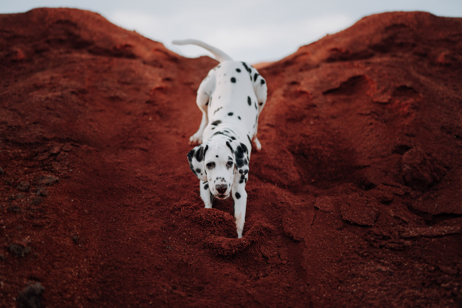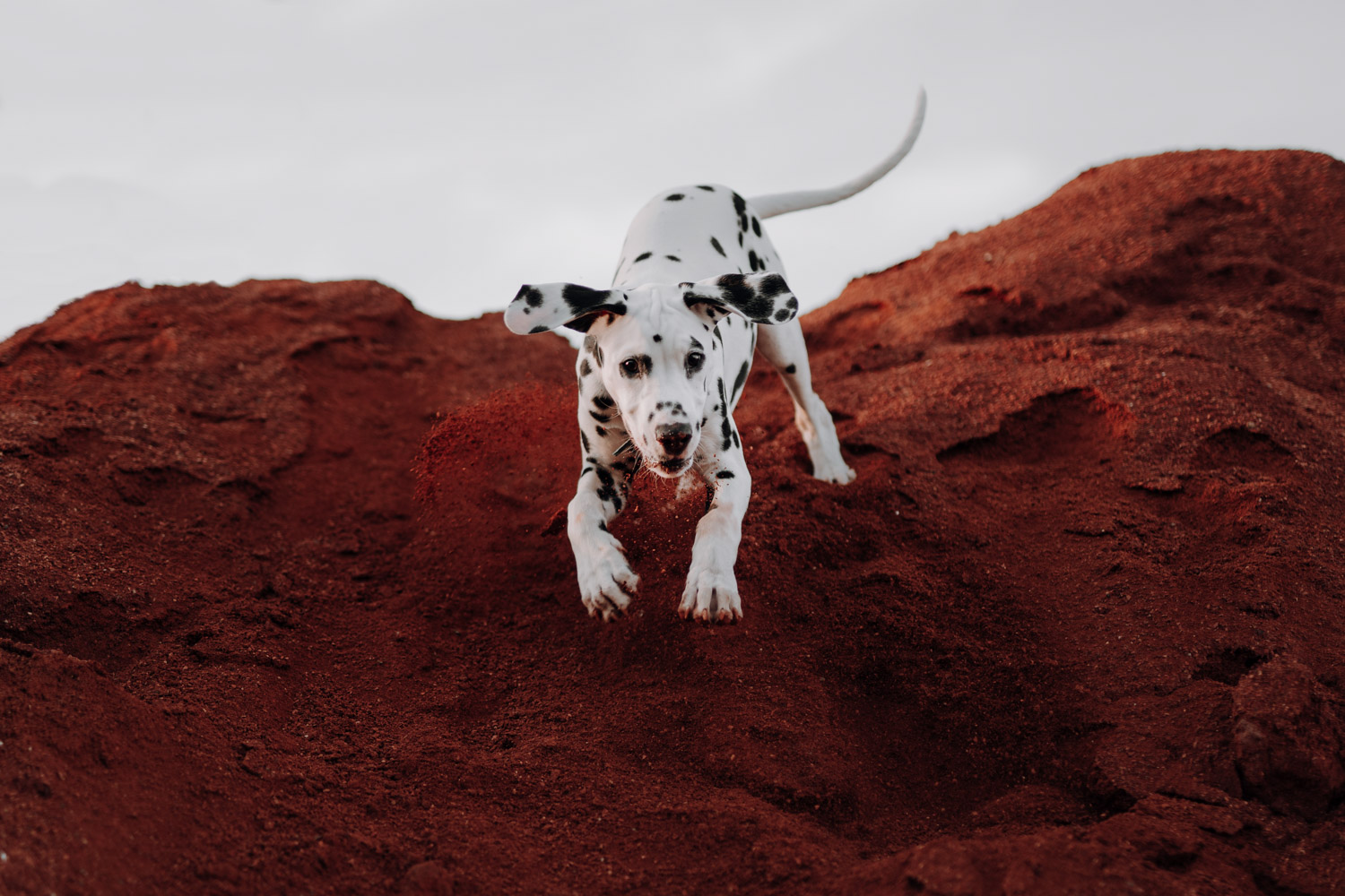 Dominique habe ich bereits vor ein paar Jahren kennengelernt, bei einem Shooting mit ihrer Stute Dillian. An dieses Shooting habe ich ganz besondere Erinnerungen, wir hatten eine wunderschöne Location mit perfektem Licht und die Stimmung zwischen den beiden war einfach schön mitanzusehen. So habe ich mich sehr gefreut, als sich Dominique wieder gemeldet hat – diesmal für ein Fotoshooting mit dem kleinen Henry, einem zuckersüssen Dalmatiner Welpen. Noch vor kurzem hatte ich selbst einen Welpen, doch daraus ist mittlerweile schon eine ausgewachsene Hündin geworden. Das geht so schnell! Als Location habe ich eine Sandgrube gewählt, in der ich schon ein paar Mal Shootings gemacht habe, jedoch noch nie ein Hundeshooting. Es gibt dort Sand und Gesteinsformationen in allen möglichen Farben, für Fotografen ein Paradies. Henry hat wunderbar geduldig mitgemacht. Danke Dominique & Claude für ein weiteres Shooting, das ich in sehr guter Erinnerung behalten werde!