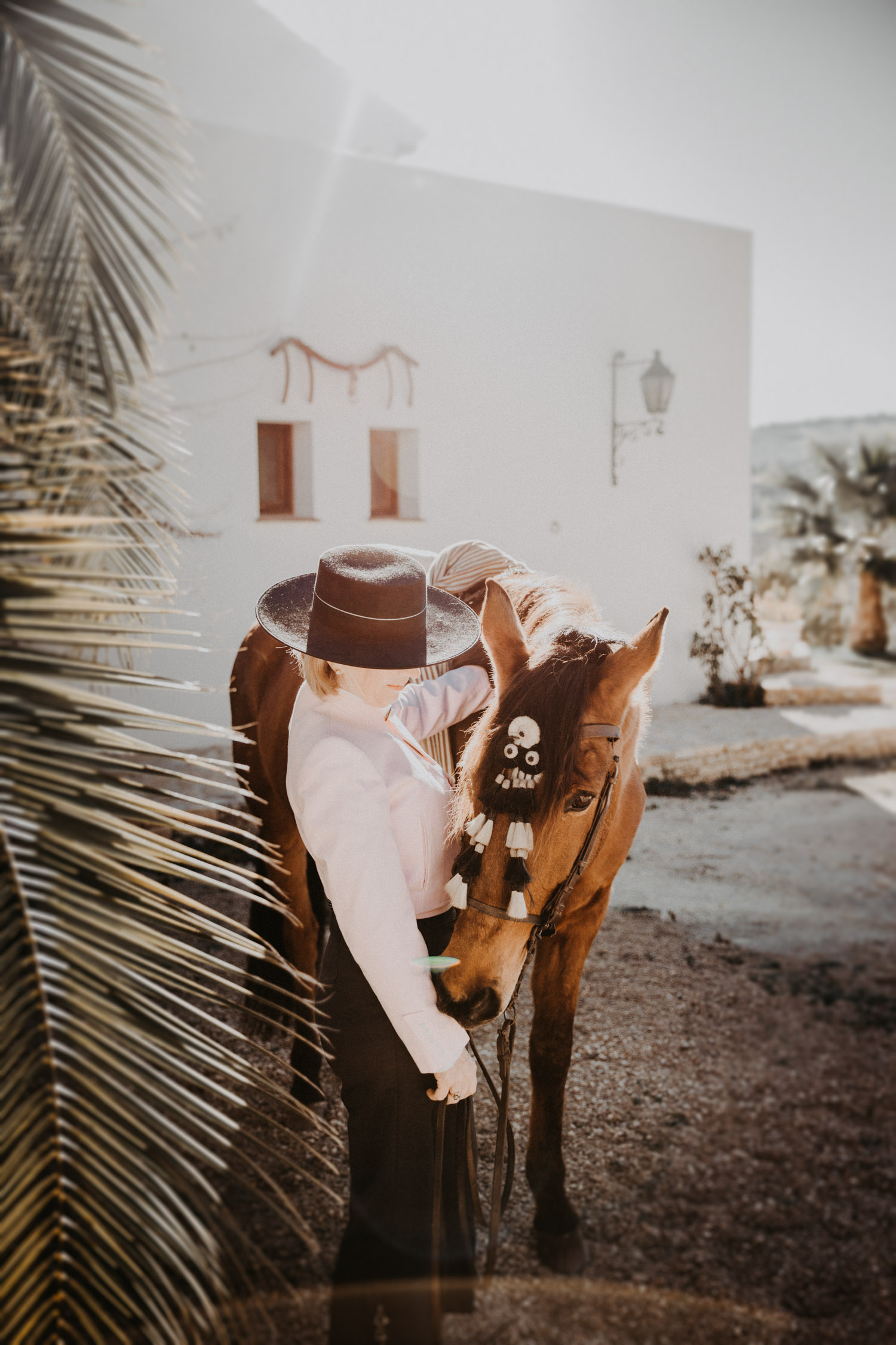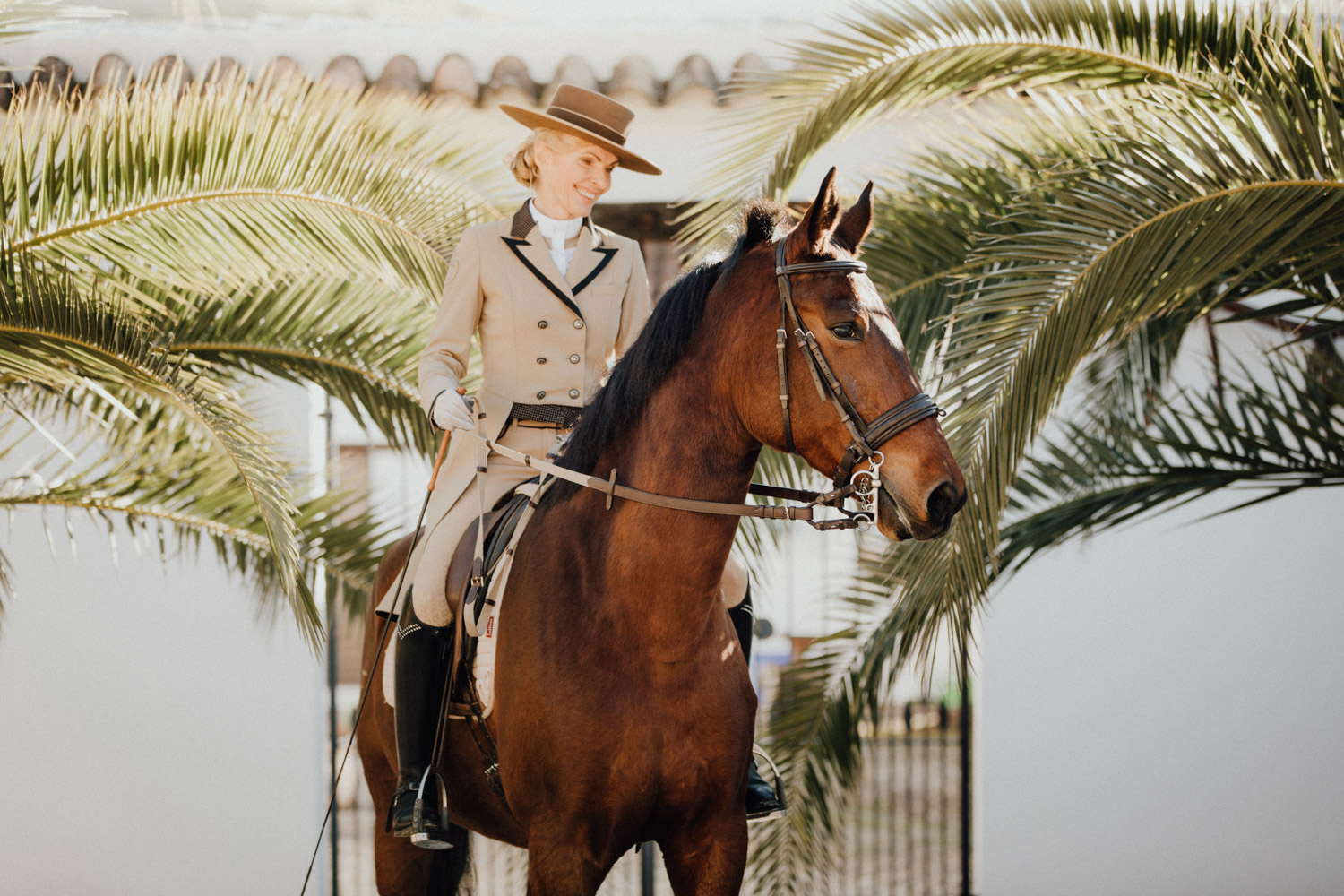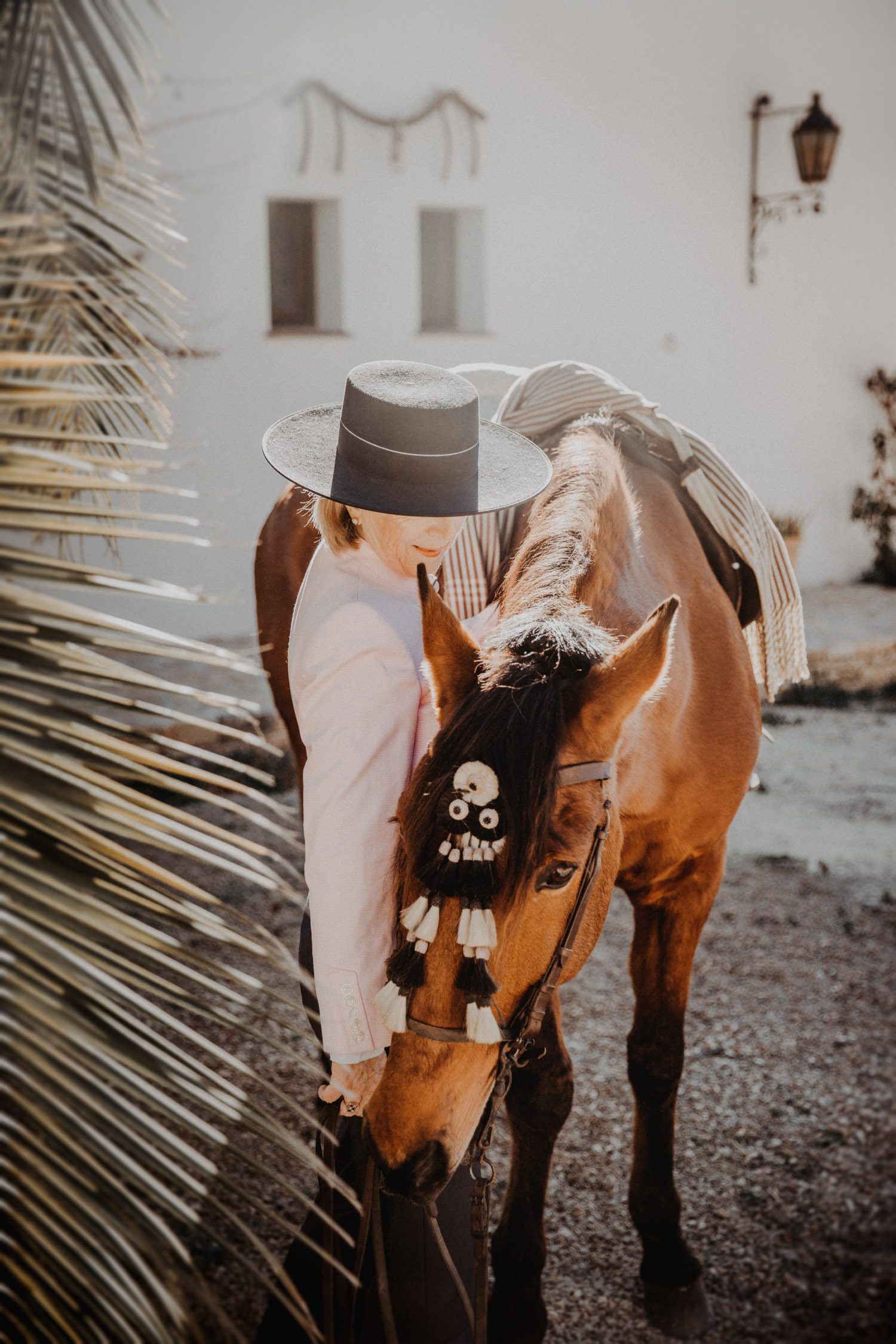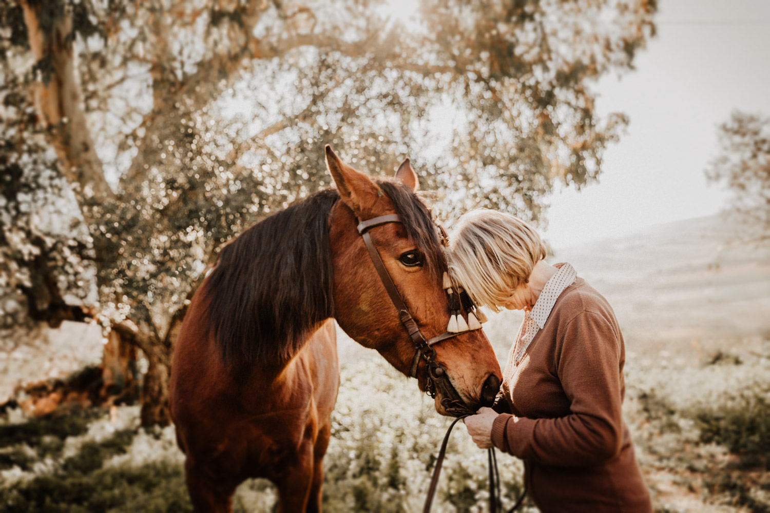 Kathy kommt ursprünglich aus England und hat in ihrem Leben schon einige Pferde besessen. Mittlerweile wohnt sie mit ihrem Mann in Spanien, an ihrer Seite ist Cortez – ein spanischer Wallach. Diese zwei haben Helene’s und mein Herz ganz besonders erobert, denn selten sieht man auch als Aussenstehender so offensichtlich auf den ersten Blick, dass Pferd und Mensch so perfekt zusammenpassen. Kathy hat mir erzählt, dass sie Cortez schon fast verkauft hat weil sie sich gesundheitlich einfach nicht mehr in der Lage gefühlt hat, ein Pferd zu besitzen und sich darum zu kümmern, aber letztendlich hat sie es doch nicht übers Herz gebracht. Cortez passt mit einer Engelsgeduld auf sie auf, und sie ist ihm dafür von Herzen dankbar. “Weiss du”, hat sie mir erklärt, “er mag es nicht, wenn man ihm Dinge befiehlt. Ich bitte ihn immer höflich. Und manchmal mag er es, einfach nur gestreichelt zu werden.” Das haben die zwei während unserem Shooting ausführlich gezeigt und so war es, wie es immer sein sollte: Ruhig, entspannt, friedlich.