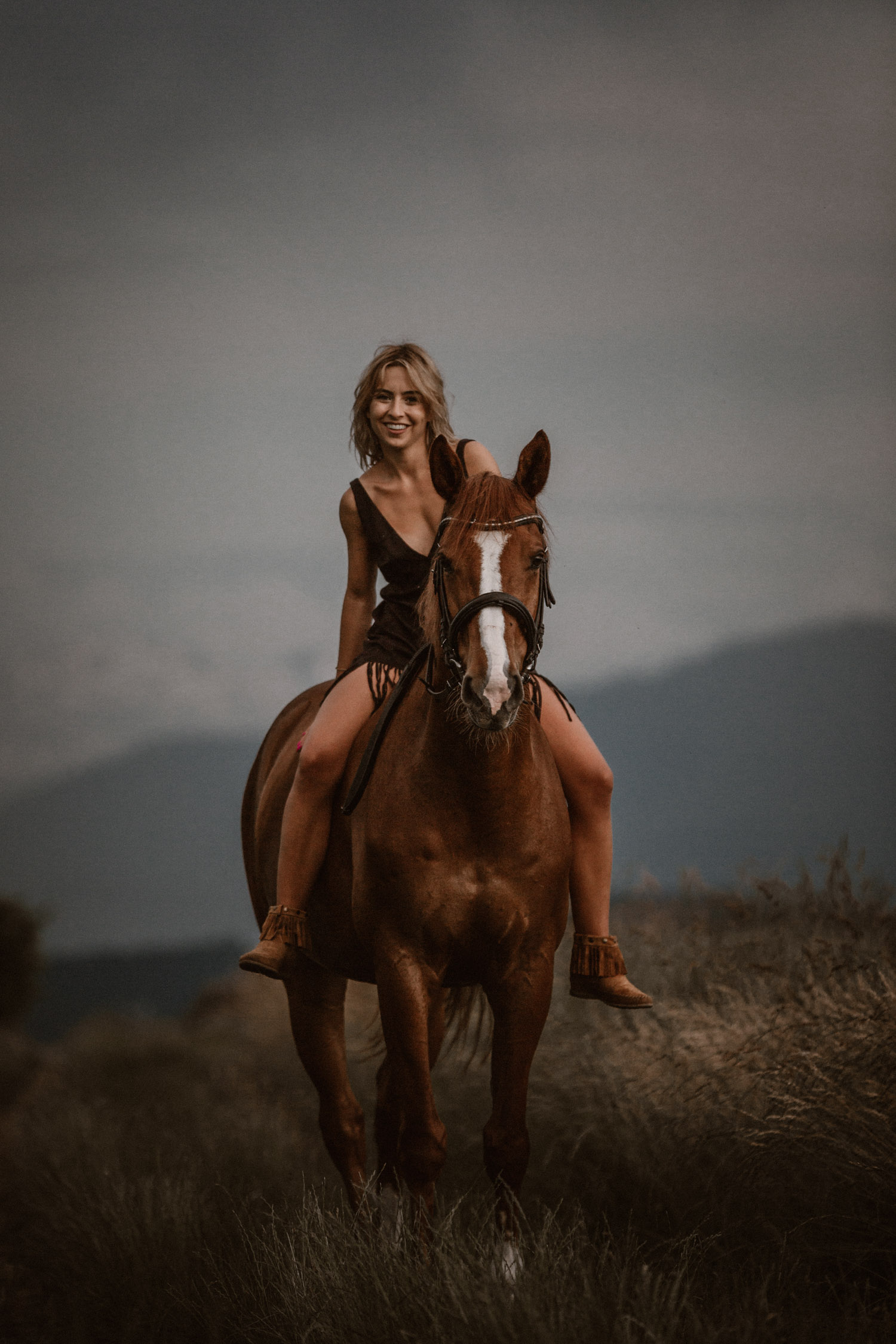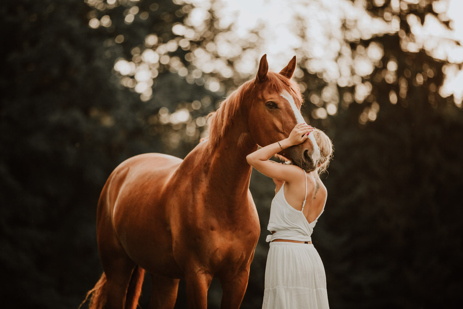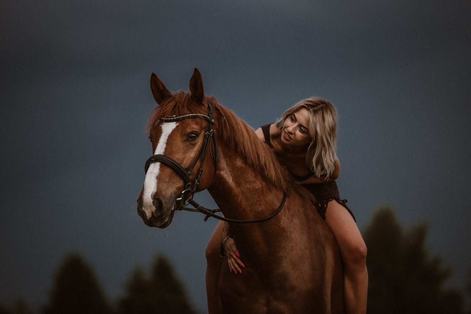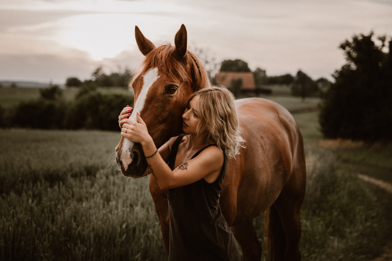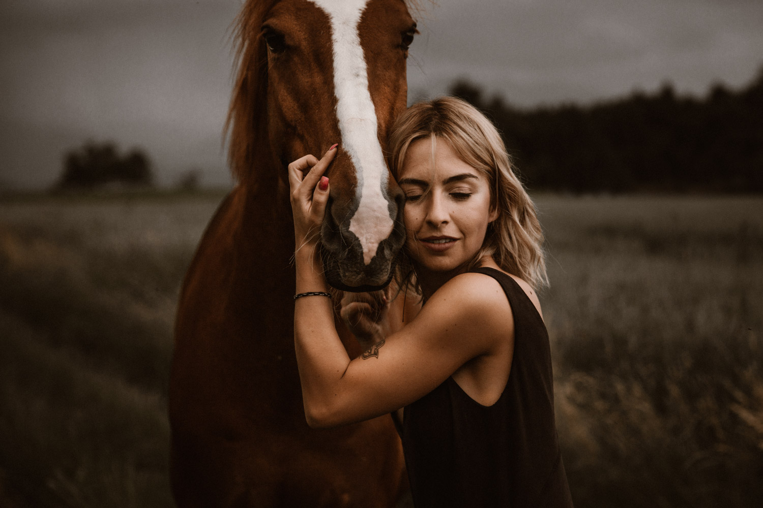 Mégane ist ursprünglich aus der Westschweiz, doch vor einiger Zeit ist sie ihrem mittlerweile Verlobten in die Deutschschweiz gefolgt. Kurz später ist Florris in ihr Leben getreten: Ein 7-jähriger Fuchswallach, geboren in den Niederlanden. Und weil jedes richtige Pferde-Mädchen auch einmal schöne Bilder von sich und seinem Pferd braucht, hat sie mich vor einiger Zeit angefragt für ein Pferdeshooting in Luzern. Weil mein Französisch echt zu wünschen übrig lässt (kein Wort mehr gesprochen seit meiner Matur im Jahr 2012, leider) wurde das also mein erstes Shooting in Englisch – in der Schweiz zumindest. So sind wir losgezogen auf der Suche nach einer geeigneten Fotolocation und sind zum Glück auch bald fündig geworden. Leider war die Location noch bei anderen Wesen sehr beliebt: Insekten! Unglaublich viele waren es, aber Florris hat sich tapfer geschlagen. Dank meinem neuen, einfach retuschierbaren Shootinghalfter konnten wir ihn ohne Trense fotografieren. Irgendwann hatte der hübsche Fuchswallach aber definitiv genug von all diesen Viechern und wir haben uns auf die Suche nach einer anderen Location gemacht. Langsam ging die Sonne unter, und zu meiner Begeisterung zogen Gewitterwolken auf. Ich liebe es! Ein richtig schöner Gewitterhimmel ist so stimmungs- und ausdrucksvoll. Leider lässt sich aber ein “Gewittershooting” eher schlecht planen – wenn mans planen wollte hätte man wahrscheinlich Pech und es würde einfach nur regnen. Darum lasse ich das und freue mich über die Gelgenheiten, bei denen ich durch Zufall das Glück habe. Vor wenigen Jahren hatte ich dieses Glück schon einmal, damals folgte kurz darauf ein Gewitter wie ich es sonst noch nie erlebt habe. Diesmal blieben wir zum Glück trocken und konnten den Himmel ausgiebig geniessen und nutzen. Das dunkle Blau und das Orange von Florris’ Fell ergänzen sich einfach perfekt und ergeben eine wunderbare Stimmung. Es muss einfach wirklich nicht immer ein romantischer Sonnenuntergang sein – im Gegenteil. Danke Mégane & Florris – für ein wunderbar ruhiges und friedliches Pferdeshooting in Luzern, das ich sehr gerne in Erinnerung halten werde.