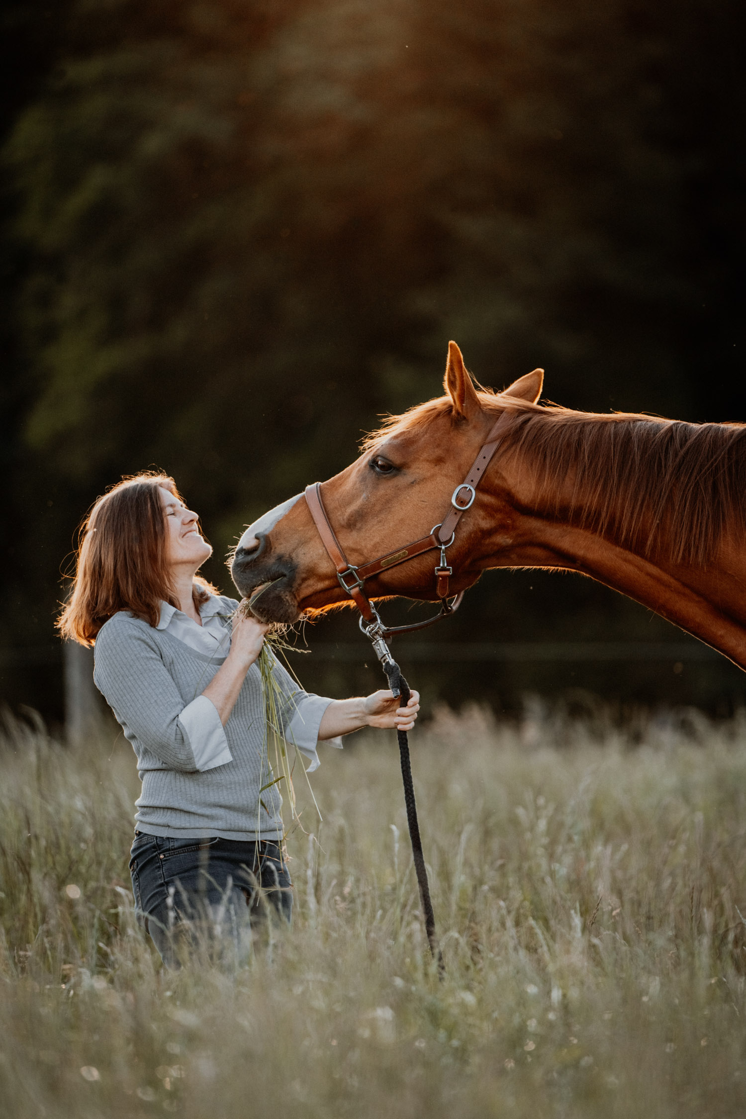 Marianne kenne ich gefühlt schon ewig, sie war damals eine meiner allerersten Kunden. Wir teilen nicht nur die Liebe zu Pferden, sondern auch die Leidenschaft für die Fotografie. Unzählige Shootings durfte ich schon für sie machen, von allen wichtigen Dingen im Leben: Pferd, Schwangerschaft, Baby 🙂 Sie war schon bei mir im Coaching und hat mich aber wiederum dazu inspiriert, von Canon zu Sony zu wechseln. Nun war es ein weiteres Mal soweit, aus einem nicht ganz so schönen Anlass: Monti, Mariannes Vollblut-Wallach, war verletzt und es sah ganz so aus, als müssten sie sich bald verabschieden. So bin ich ein weiteres Mal für ein Pferdeshooting in Aarau aufgebrochen, dieses Mal sollten aber vor allem Fotos mit Monti und Sara entstehen, die schon seit vielen Jahren als treue Reitbeteiligung zum Team gehört. Wir hatten das Glück von wunderbarem Licht, perfekt für Gegenlicht Fotos, und trotz viel Gras am Boden und den ein oder anderen Insekten (die manchmal für coole Bildeffekte sorgen!) sind ein paar ganz spezielle Bilder entstanden. Kurze Zeit später kam dann auch noch die gute Nachricht: falsche Diagnose, die Verletzung ist wider Erwarten gut behandelbar und so dürfen die drei hoffentlich noch viele weitere, schöne Jahre geniessen. Danke Marianne, Sara und Monti – es war mir wie immer eine Ehre bei euch.