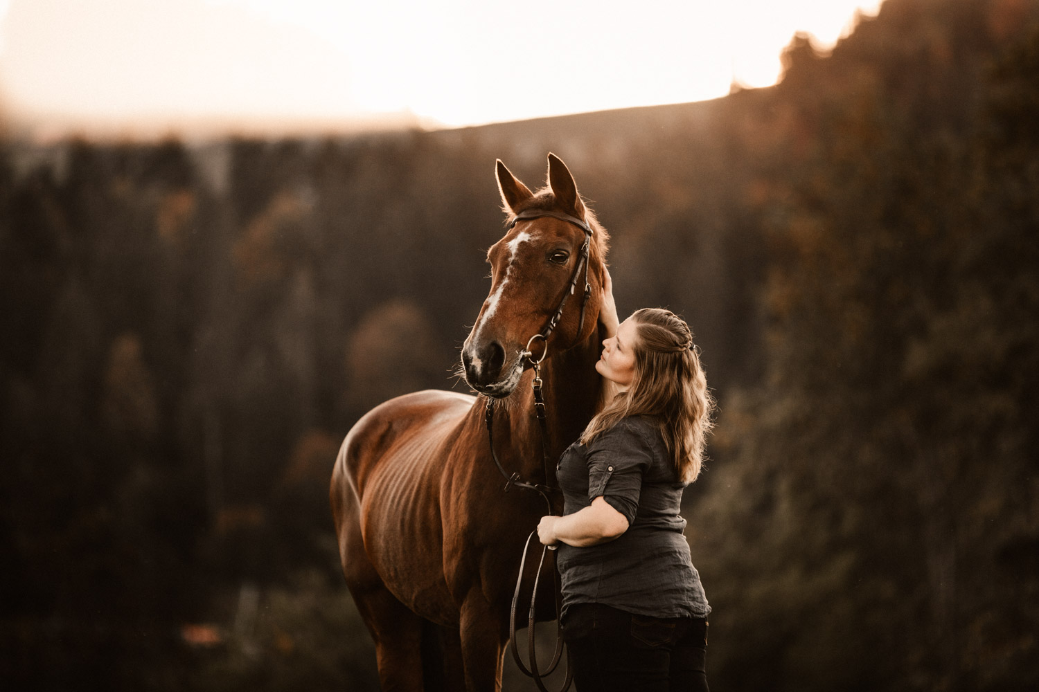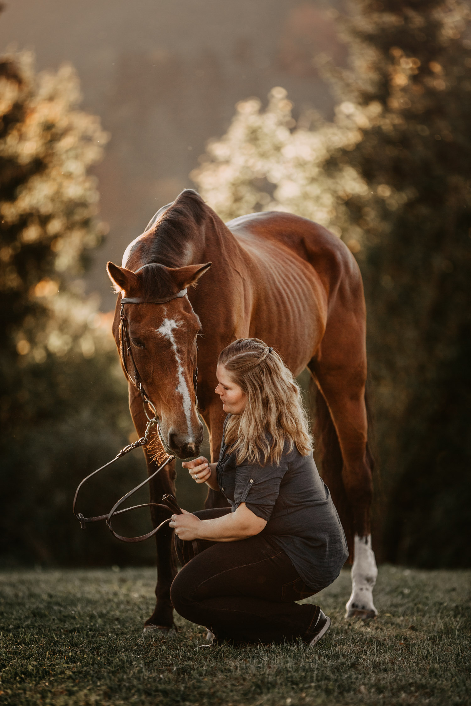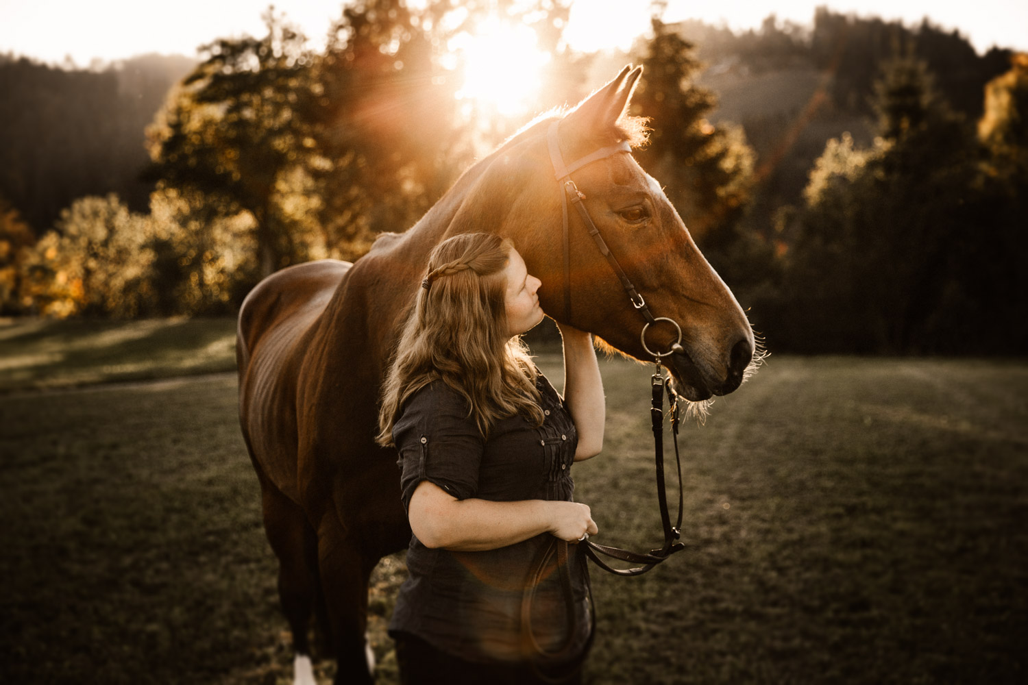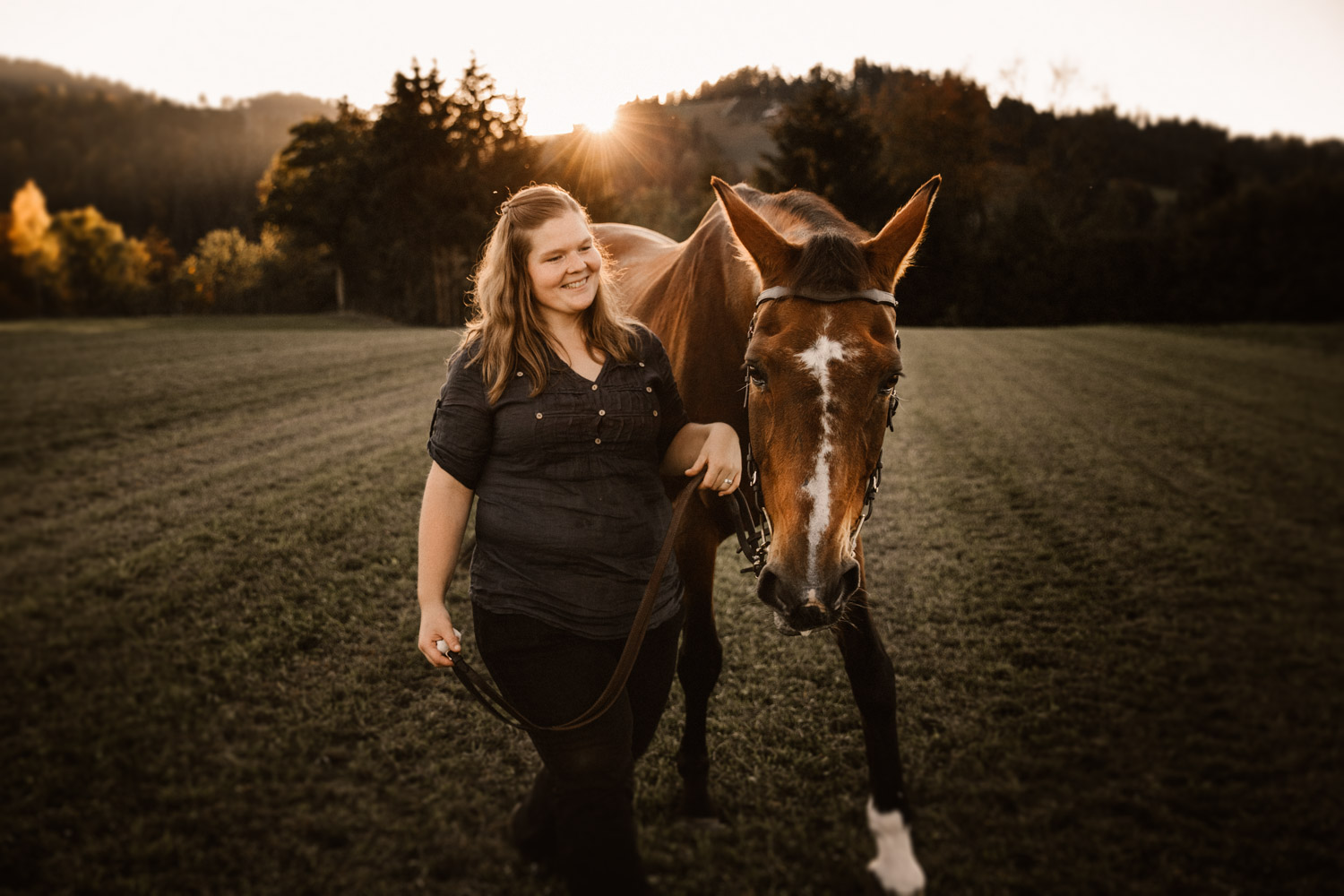 Vor einiger Zeit hat Silvia geheiratet – und dabei haben ihr Mann und sie einen Gutschein für ein Paarshooting mit Pferd geschenkt bekommen. Männer sind aber oft etwas kamerascheu… und so wurde auch das zu einem reinen Pferdeshooting 🙂 Ursina ist bereits eine alte Dame, stolze 24 Jahre alt, und begleitet Silvia schon länger. Erst als Pflegepferd, aber irgendwann dann wurde sie zum ganz eigenen vierbeinigen Begleiter. Wir haben schon vor dem Shooting ein paar Mails hin und her geschrieben und uns über Orte und Möglichkeiten ausgetauscht, dabei hat mich Silvia vorgewarnt, dass es etwas schwierig werden könne, Ursina habe es nicht so mit dem Stillstehen. Abschrecken kann mich das nicht mehr, ich hab schon viel erlebt 😉 , aber einfacher macht das die Shootings natürlich nicht. Auf alles gefasst habe ich mich dann für ein weiteres Pferdeshooting in Bern auf den Weg gemacht – dort ist es immer wieder schön, wenn auch nicht ganz um die Ecke! Nach kurzem Location-Scouting vor Ort haben wir uns für einen Ort entschieden und sind mit Ursina losmarschiert. Und ja, was soll ich sagen? Ich kann mich an kein Shooting erinnern, bei dem das Pferd so ruhig, zufrieden und mit sich und der Welt im Reinen war. Es ist einfach immer wieder schön auf Pferd-Mensch-Paare zu treffen, die einen so friedlichen Umgang miteinander haben und das auch ausstrahlen. Nach 45 Minuten entspanntesten Shootings haben wir das Ganze schon beendet, denn – was will man mehr? Danke Silvia & Ursina für dieses Erlebnis <3