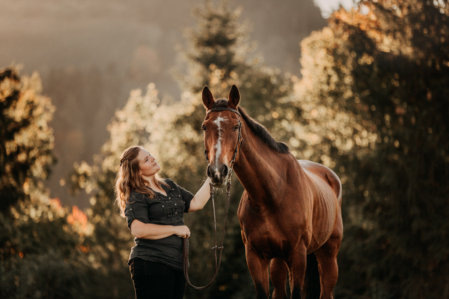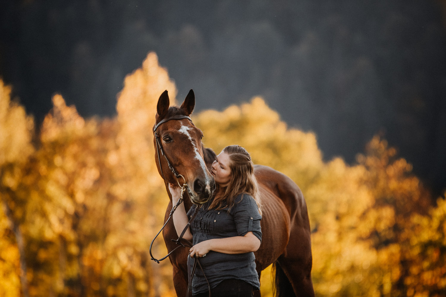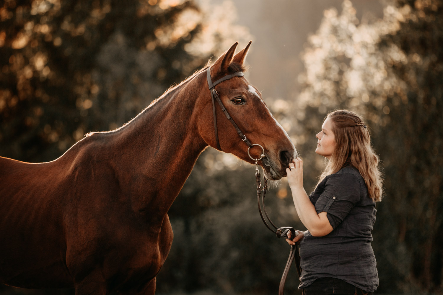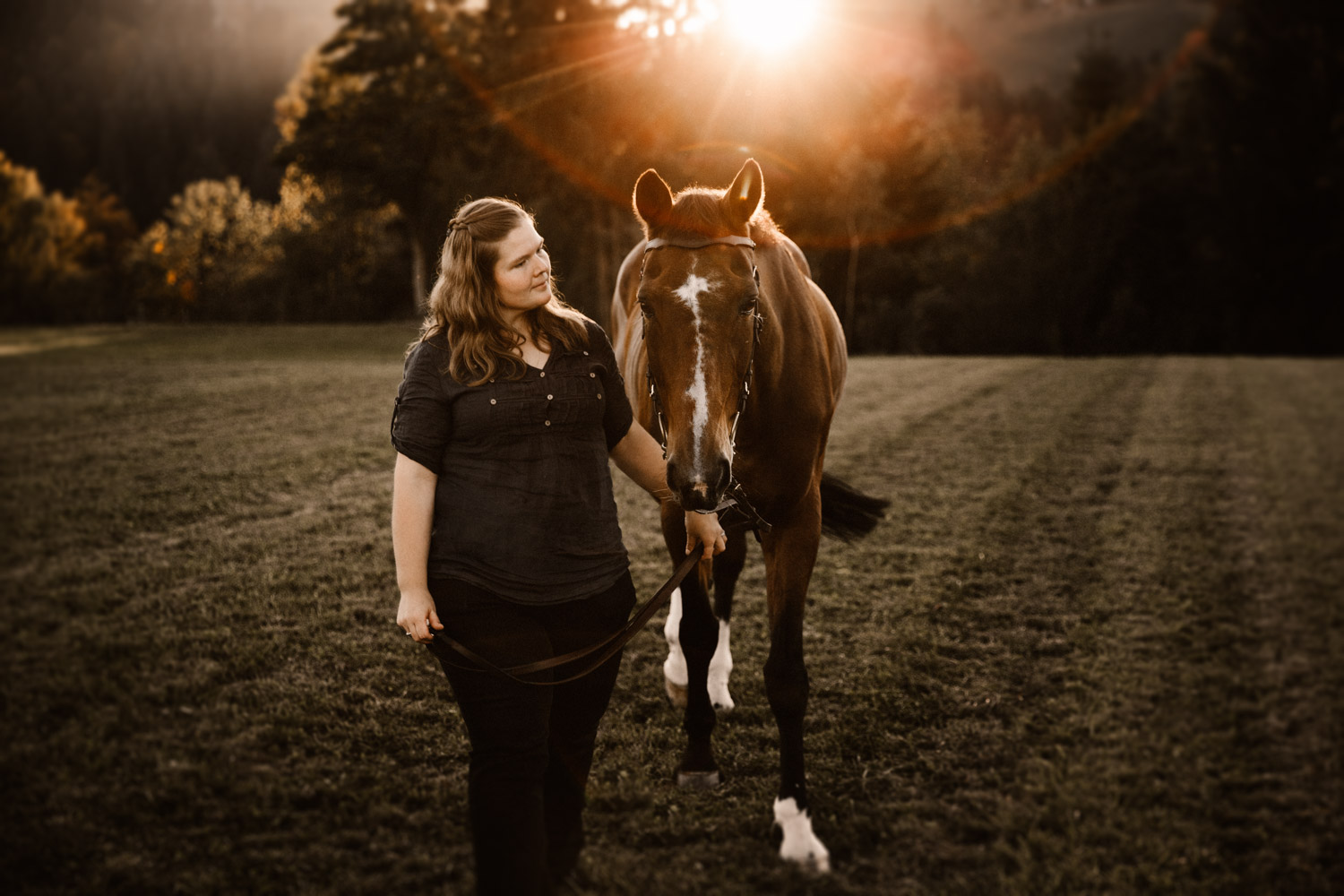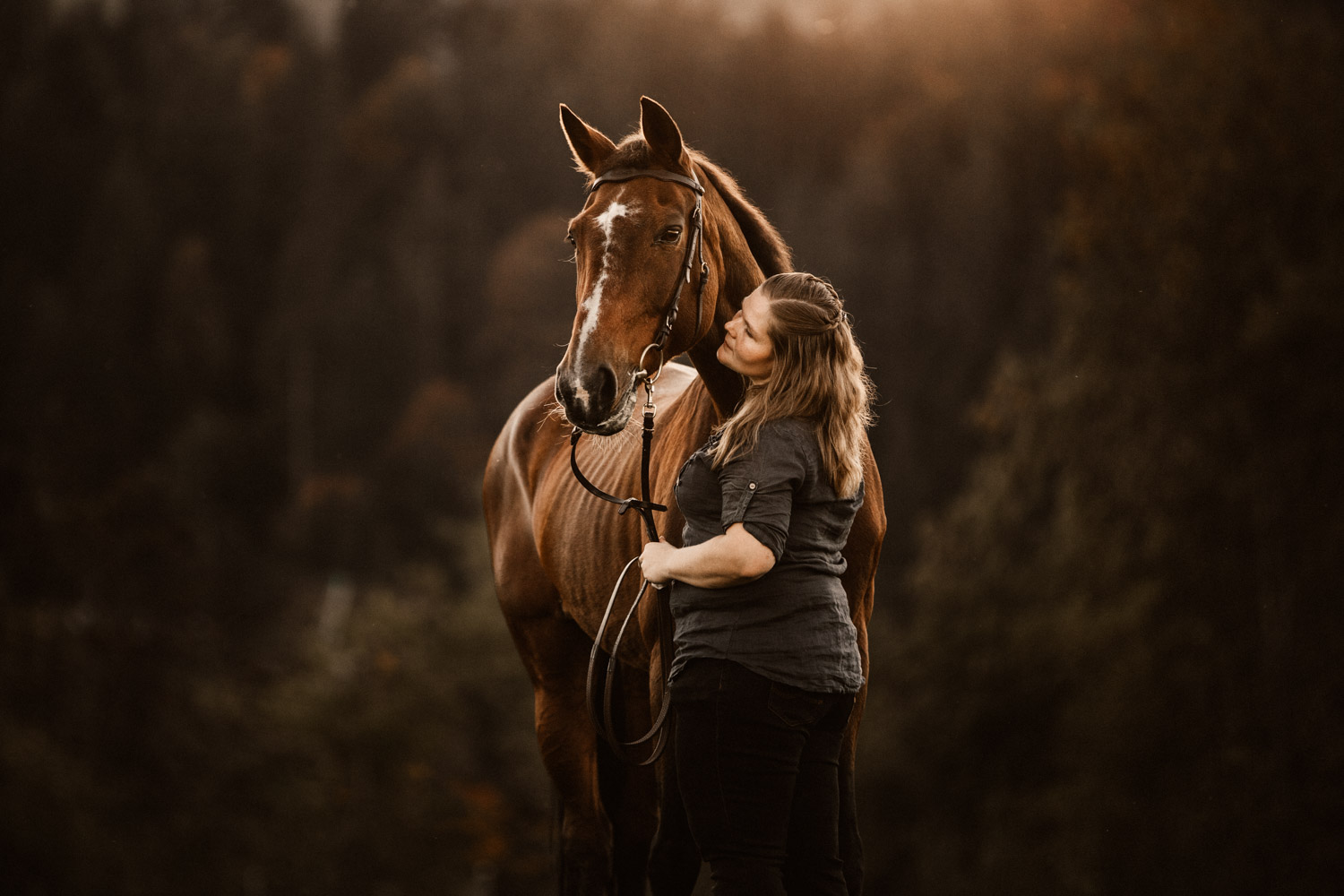 Vor einiger Zeit hat Silvia geheiratet – und dabei haben ihr Mann und sie einen Gutschein für ein Paarshooting mit Pferd geschenkt bekommen. Männer sind aber oft etwas kamerascheu… und so wurde auch das zu einem reinen Pferdeshooting 🙂 Ursina ist bereits eine alte Dame, stolze 24 Jahre alt, und begleitet Silvia schon länger. Erst als Pflegepferd, aber irgendwann dann wurde sie zum ganz eigenen vierbeinigen Begleiter. Wir haben schon vor dem Shooting ein paar Mails hin und her geschrieben und uns über Orte und Möglichkeiten ausgetauscht, dabei hat mich Silvia vorgewarnt, dass es etwas schwierig werden könne, Ursina habe es nicht so mit dem Stillstehen. Abschrecken kann mich das nicht mehr, ich hab schon viel erlebt 😉 , aber einfacher macht das die Shootings natürlich nicht. Auf alles gefasst habe ich mich dann für ein weiteres Pferdeshooting in Bern auf den Weg gemacht – dort ist es immer wieder schön, wenn auch nicht ganz um die Ecke! Nach kurzem Location-Scouting vor Ort haben wir uns für einen Ort entschieden und sind mit Ursina losmarschiert. Und ja, was soll ich sagen? Ich kann mich an kein Shooting erinnern, bei dem das Pferd so ruhig, zufrieden und mit sich und der Welt im Reinen war. Es ist einfach immer wieder schön auf Pferd-Mensch-Paare zu treffen, die einen so friedlichen Umgang miteinander haben und das auch ausstrahlen. Nach 45 Minuten entspanntesten Shootings haben wir das Ganze schon beendet, denn – was will man mehr? Danke Silvia & Ursina für dieses Erlebnis <3