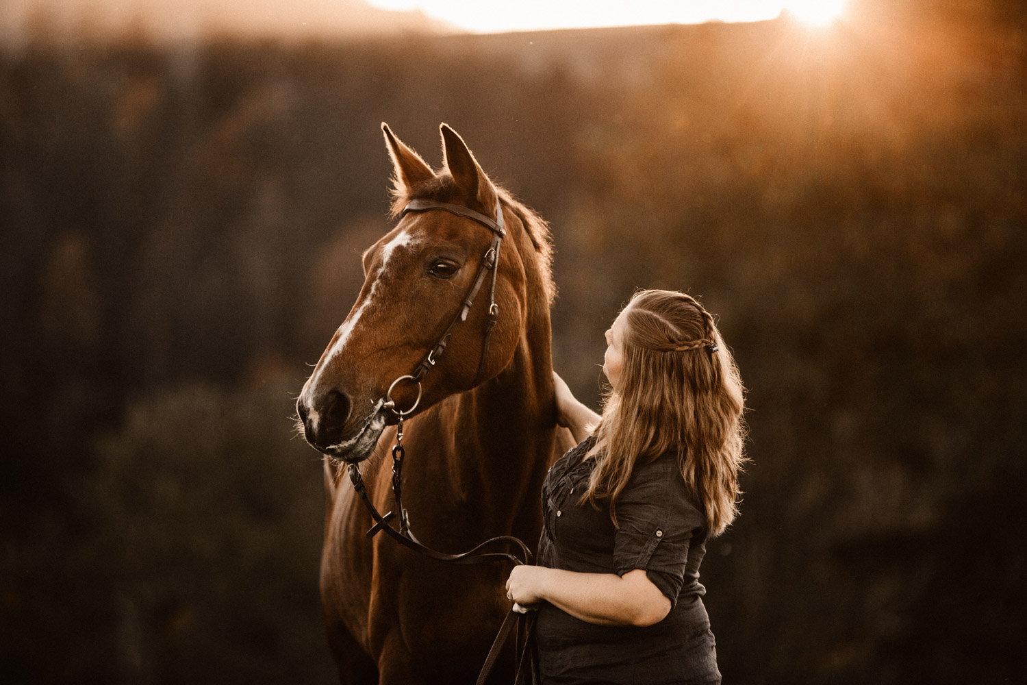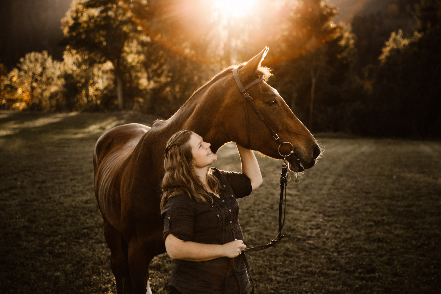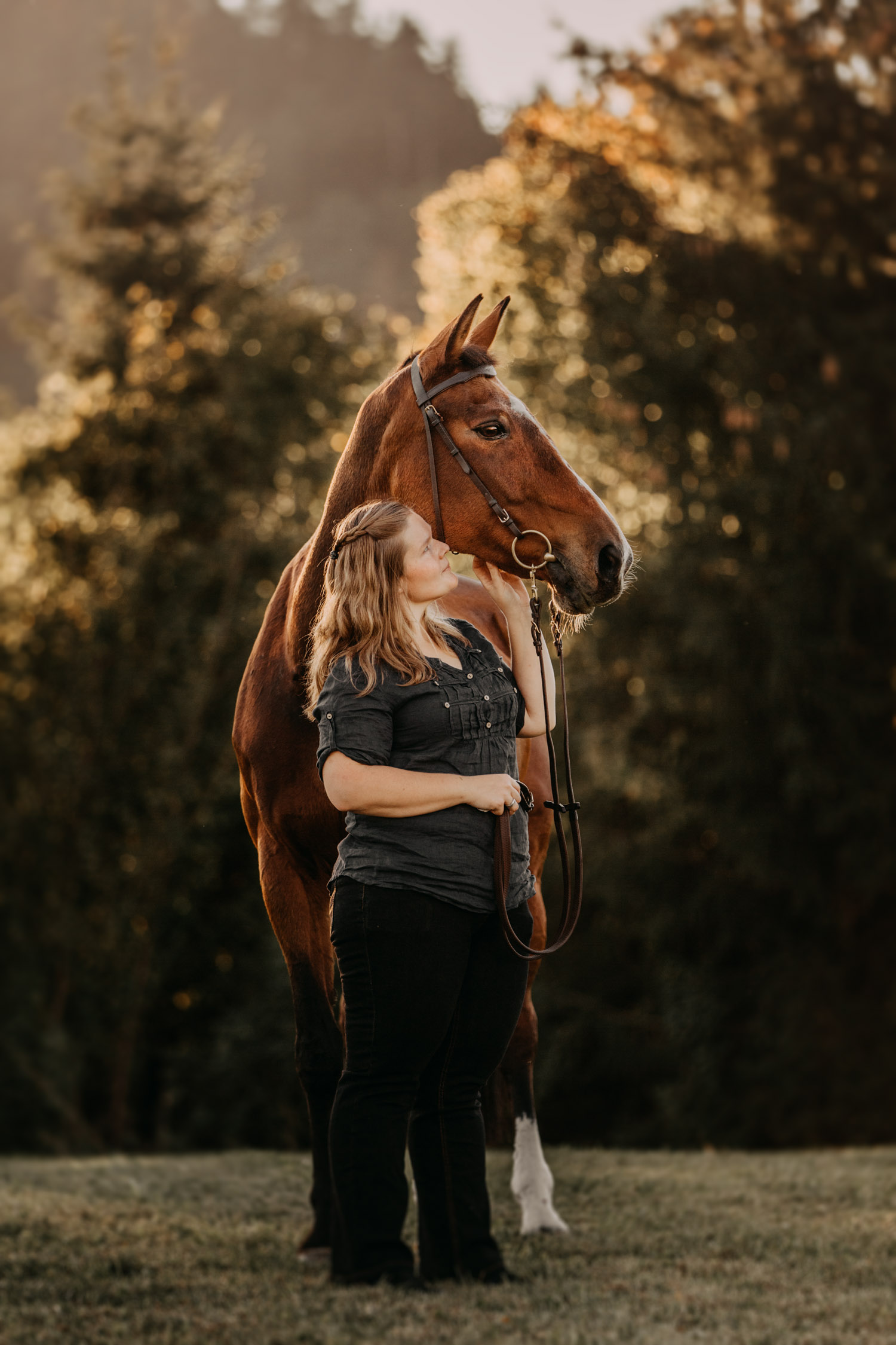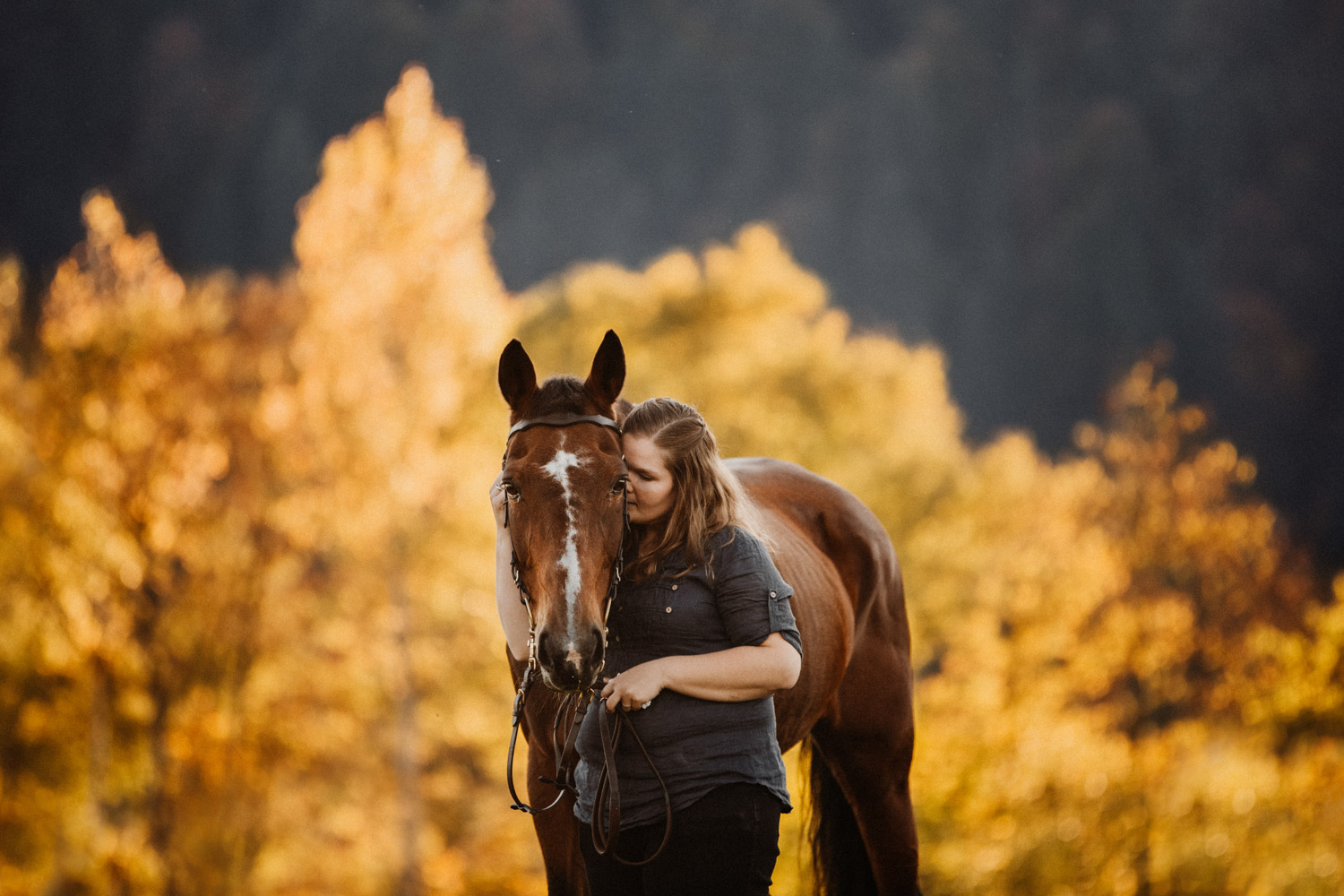 Vor einiger Zeit hat Silvia geheiratet – und dabei haben ihr Mann und sie einen Gutschein für ein Paarshooting mit Pferd geschenkt bekommen. Männer sind aber oft etwas kamerascheu… und so wurde auch das zu einem reinen Pferdeshooting 🙂 Ursina ist bereits eine alte Dame, stolze 24 Jahre alt, und begleitet Silvia schon länger. Erst als Pflegepferd, aber irgendwann dann wurde sie zum ganz eigenen vierbeinigen Begleiter. Wir haben schon vor dem Shooting ein paar Mails hin und her geschrieben und uns über Orte und Möglichkeiten ausgetauscht, dabei hat mich Silvia vorgewarnt, dass es etwas schwierig werden könne, Ursina habe es nicht so mit dem Stillstehen. Abschrecken kann mich das nicht mehr, ich hab schon viel erlebt 😉 , aber einfacher macht das die Shootings natürlich nicht. Auf alles gefasst habe ich mich dann für ein weiteres Pferdeshooting in Bern auf den Weg gemacht – dort ist es immer wieder schön, wenn auch nicht ganz um die Ecke! Nach kurzem Location-Scouting vor Ort haben wir uns für einen Ort entschieden und sind mit Ursina losmarschiert. Und ja, was soll ich sagen? Ich kann mich an kein Shooting erinnern, bei dem das Pferd so ruhig, zufrieden und mit sich und der Welt im Reinen war. Es ist einfach immer wieder schön auf Pferd-Mensch-Paare zu treffen, die einen so friedlichen Umgang miteinander haben und das auch ausstrahlen. Nach 45 Minuten entspanntesten Shootings haben wir das Ganze schon beendet, denn – was will man mehr? Danke Silvia & Ursina für dieses Erlebnis <3