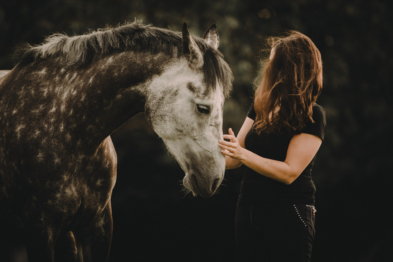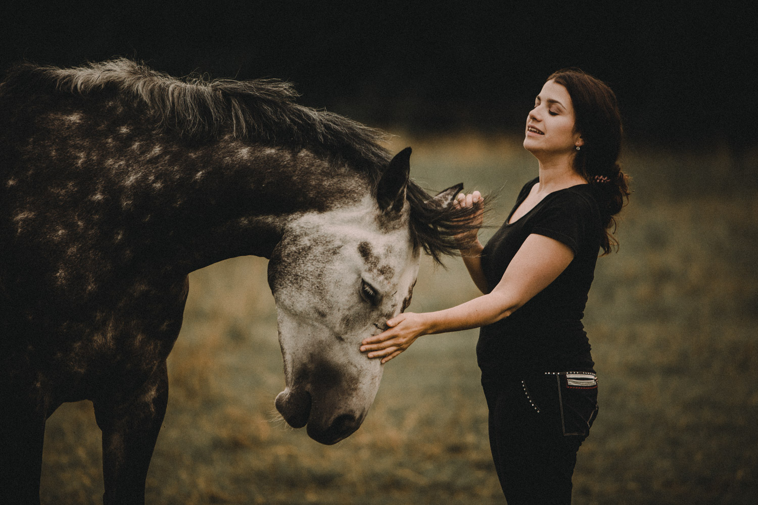 Noch immer ist die Natur etwas grau und trist, und meine Kamera ruht in ihrem Winterschlaf. Ich verbringe darum meine Freizeit damit, in alten Shootings zu stöbern, versuche, sie neu zu sehen und bearbeite sie entsprechend. Stilfindung ist ein schwieriges Thema und ich sehe es als Herausforderung, meine Art zu fotografieren und zu bearbeiten stets zu verändern. Die folgenden Bilder zeigen meine gute Freundin Tamara und ihre Stute Calira wenige Tage, nachdem Calira in die Schweiz gekommen ist. Sie war (ist ;)) ungestüm, wild, manchmal nicht sehr feinfühlig – ganz besonders in der ersten Zeit. Die Bilder, die ich damals bearbeitet und gezeigt habe waren aber eher die klassischen, harmonischen “Wendy-Bilder” – denn auch die haben wir, mit etwas Mühe, hingekriegt. Doch vor wenigen Tagen habe ich ein paar zusätzliche Bilder neu bearbeitet und sie Tamara gezeigt, und wir hatten beide den gleichen Gedanken: Eigentlich sind diese Bilder viel authentischer.
